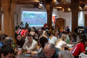 Im Anschluss begann der offizielle Teil der Vereinsversammlung im Saal Tuchlaube. Die kreativ gestalteten, aber durchaus realitätsnahen Fotos vom Präsidenten, Luca Sperb, sowie dem Oberturner, Beni Tschopp sorgten bereits am Anfang fürs Schmunzeln und die heitere, ausgelassene Stimmung zog sich weiter durch den Abend. Neben verschiedenen Abstimmungen standen auch Ersatzwahlen in der Technischen Kommission an. Neu wurde Tim Geiser als Beisitzer und Lorenzo Misticoni als Hauptverantwortlicher Leichtathletik ins TK gewählt. Wir gratulieren herzlich und wünschen euch viel Spass im neuen Amt. Der Vorstand bleibt in der bisherigen Besetzung.